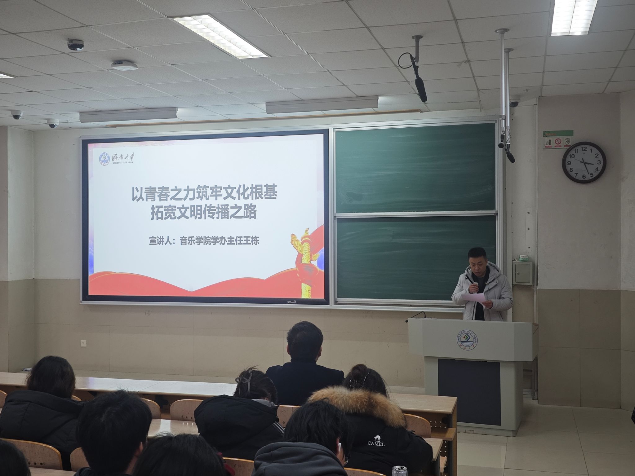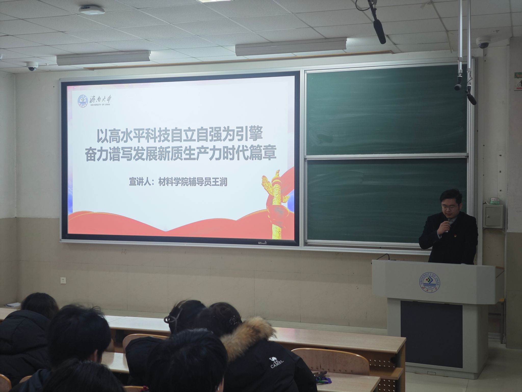 本次宣讲活动内容丰富深刻、紧扣时代脉搏。音乐学院学办主任王栋以“以青春之力筑牢文化根基拓宽文明传播之路”为题,从文化传承与创新角度,阐述青年在守护中华优秀传统文化、推动文明交流互鉴中的责任;材料学院辅导员王润围绕“以高水平科技自立自强为引擎奋力谱写发展新质生产力时代篇章”展开分享,结合学科特色剖析科技自立自强对发展新质生产力的重要意义,鼓励青年投身科研创新;成人论坛
