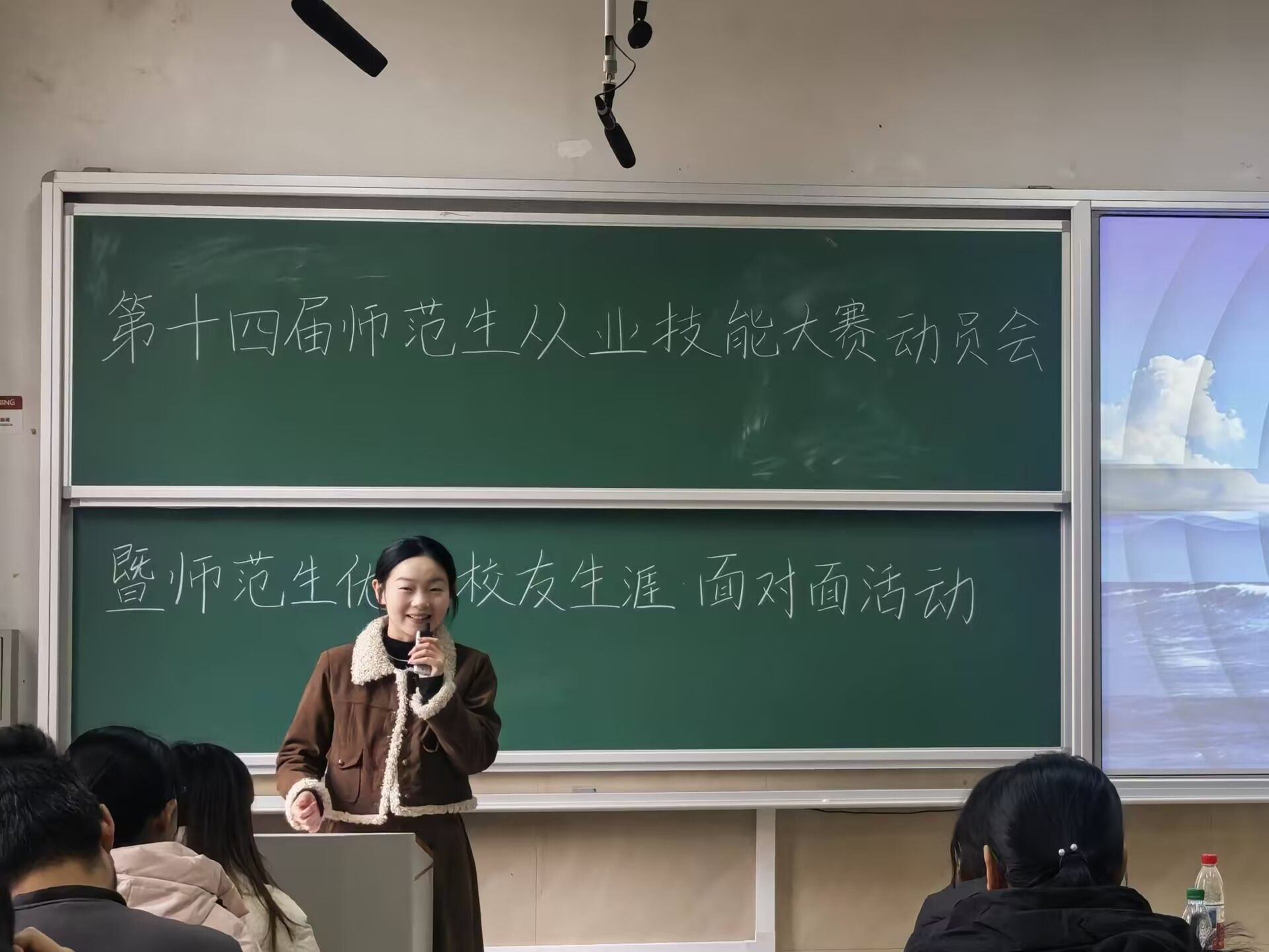 潘玮珊以自身师范生成长路径为切入点,结合教学实践中的真实案例,从专业课程学习、教学技能训练,到教招备考、师范技能大赛参赛的全流程经验逐一分享,为在场师范生梳理出清晰的成长提升路径。王瑞聚焦师范生教学、备赛、教招、考研四大核心要点展开分享,提醒同学们关注教育局官网公告,提前备齐报名材料,提升控场能力。参会师范生全程认真聆听,积极记录关键要点,现场交流热切。大家纷纷表示此次分享破解了求职备考的诸多困惑,收获了可直接运用的实战方法。