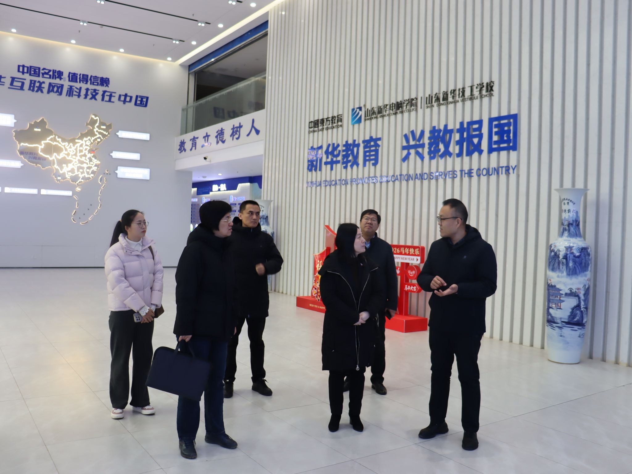 在山东新华电脑学院有限公司,范校长详细介绍了学校在职业教育、技能培训等领域的发展特色与师资招聘需求。学院向企业方介绍了数学学科在数据分析、人工智能等方向的培养优势,双方表示将加强信息互通,建立毕业生推荐渠道。