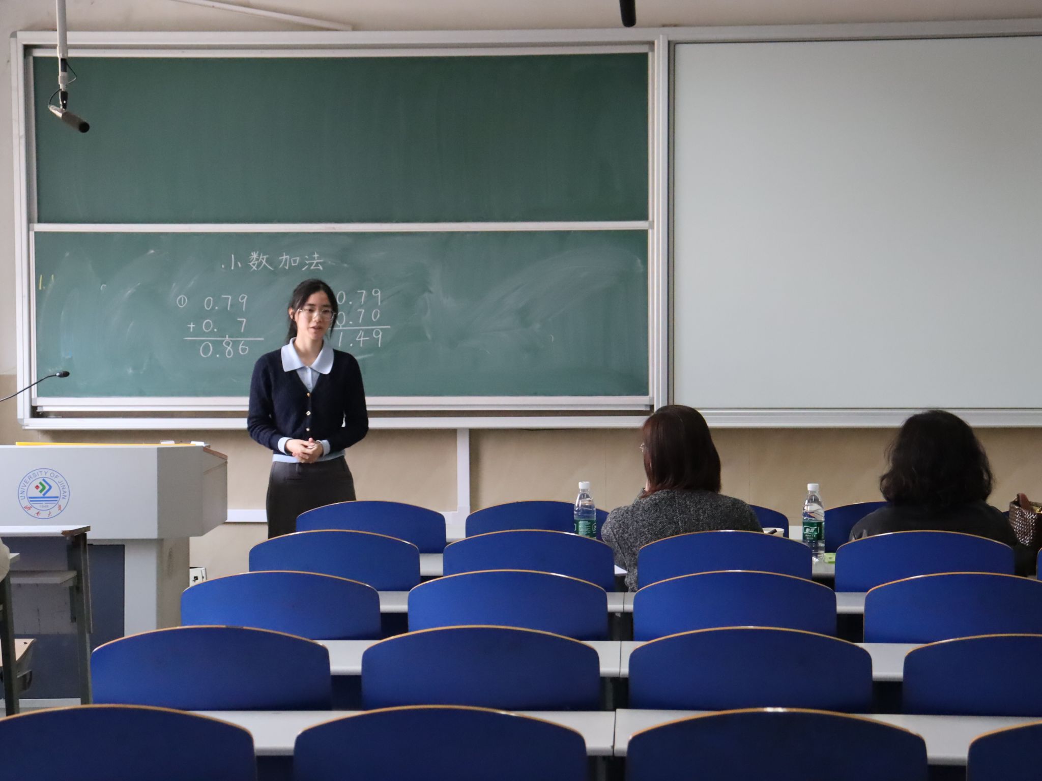 院赛于3月22日下午在第一教学楼顺利举办。比赛紧扣师范生职业发展核心需求,结合数学学科特点,设置小学、初中、高中3个学段,涵盖模拟授课、板书设计等关键环节,全方位考查选手的教学设计、课堂驾驭、语言表达、书写功底与临场应变能力。赛前,参赛选手潜心打磨教案,反复推敲授课细节,精炼板书布局,将对数学教学的热忱与专业积累融入每一处准备,展现出师范生勤勉务实的良好风貌。比赛现场氛围紧张而热烈,参赛选手们立足新课标理念,结合数学学科的逻辑严谨性与趣味性,将精巧的教学设计与新颖的教学方法融入课堂,把扎实的数学专业基础和良好的教学素养展现得淋漓尽致,为校级选拔奠定坚实基础。