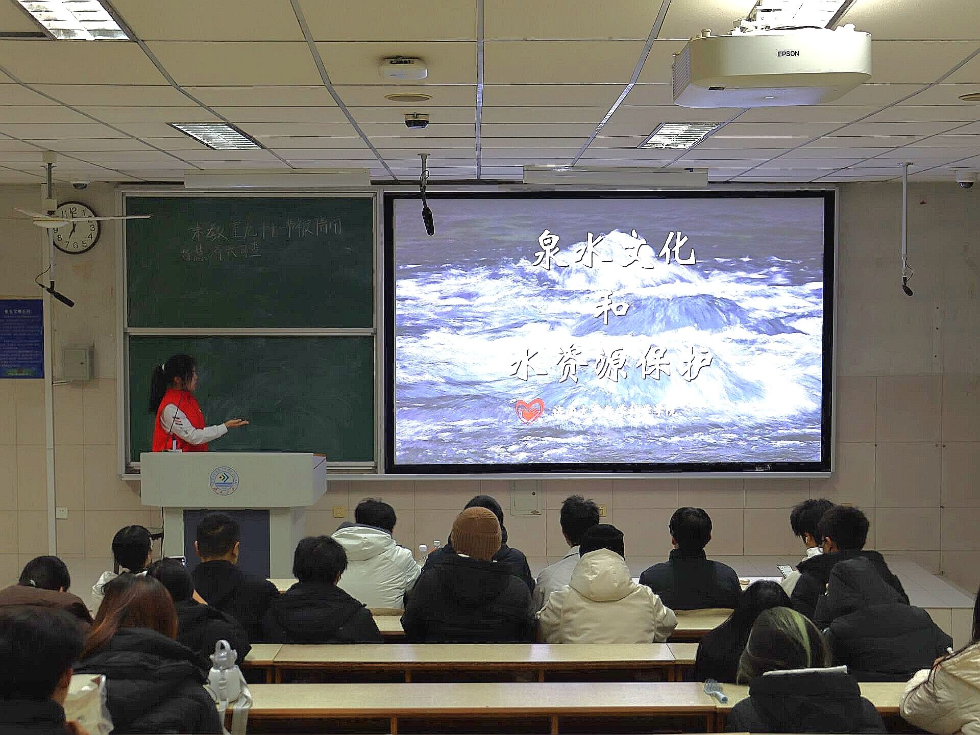 本次宣讲活动围绕水资源保护与垃圾分类两大主题展开。在水资源保护环节,谢诗雨结合多媒体演示与地质模型,系统讲解济南泉水形成机理与水资源现状,通过互动游戏与数据展示,强调节水保泉的重要性,并分享生活节水实用技巧。在垃圾分类环节,秦子从通过视频展示与实物分类实践,讲解垃圾分类标准与方法,特别设计拼图游戏与趣味口诀,帮助同学们在参与中掌握分类知识。
