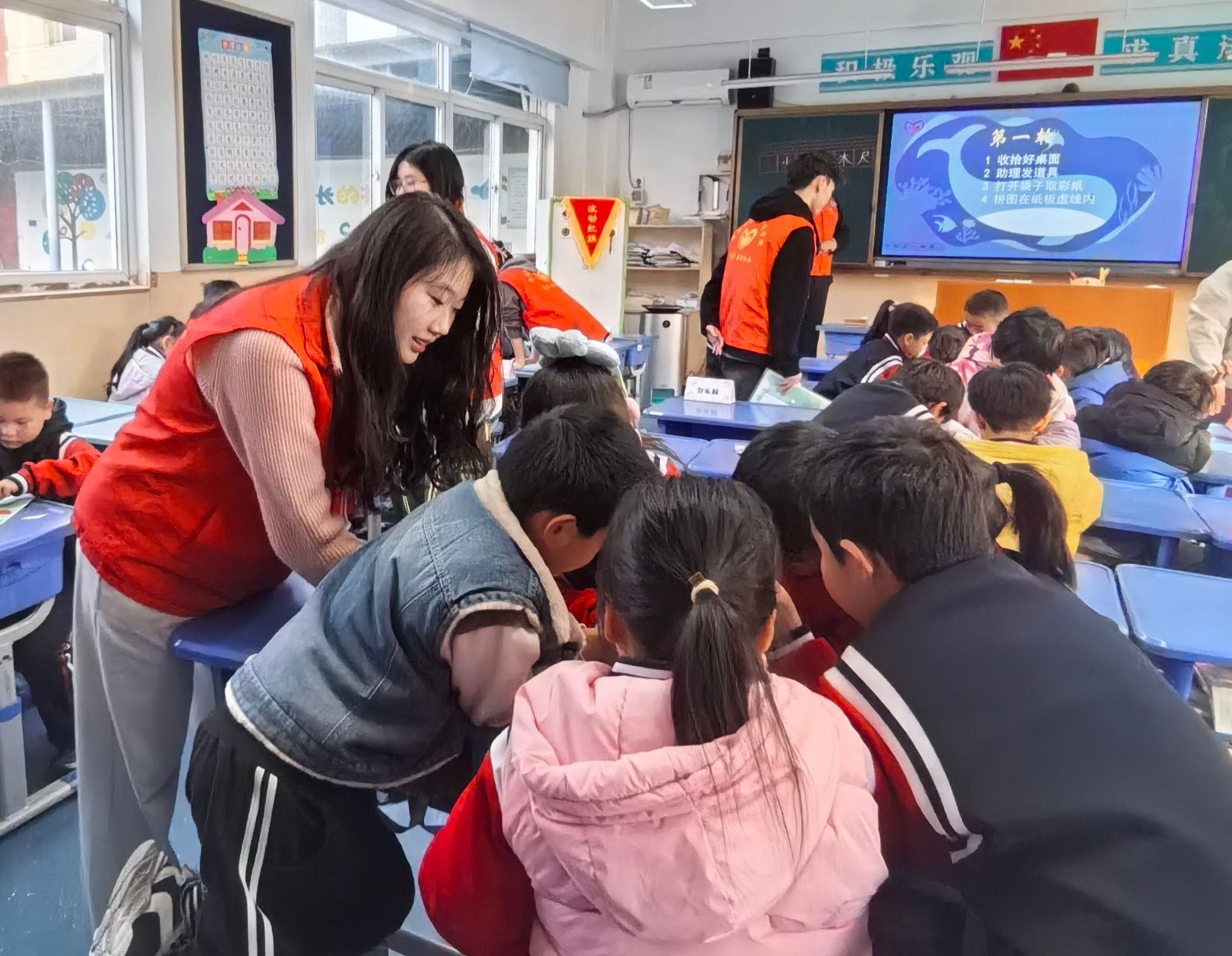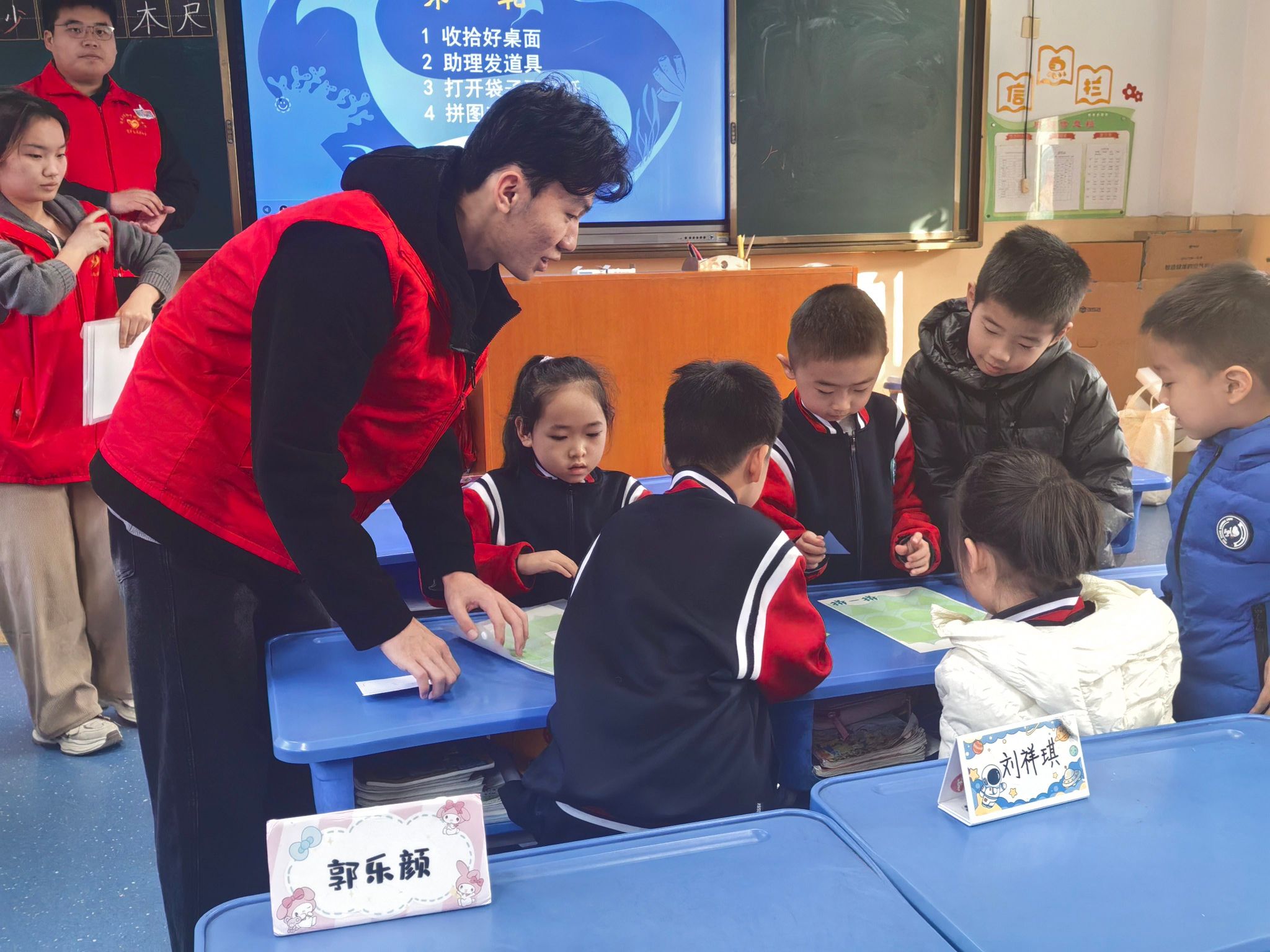 青年志愿者协会组织志愿者队伍走进济南市市中区德贤社区,为辖区内的后龙小区一年级小学生开展了一场趣味十足的垃圾分类科普课堂活动。