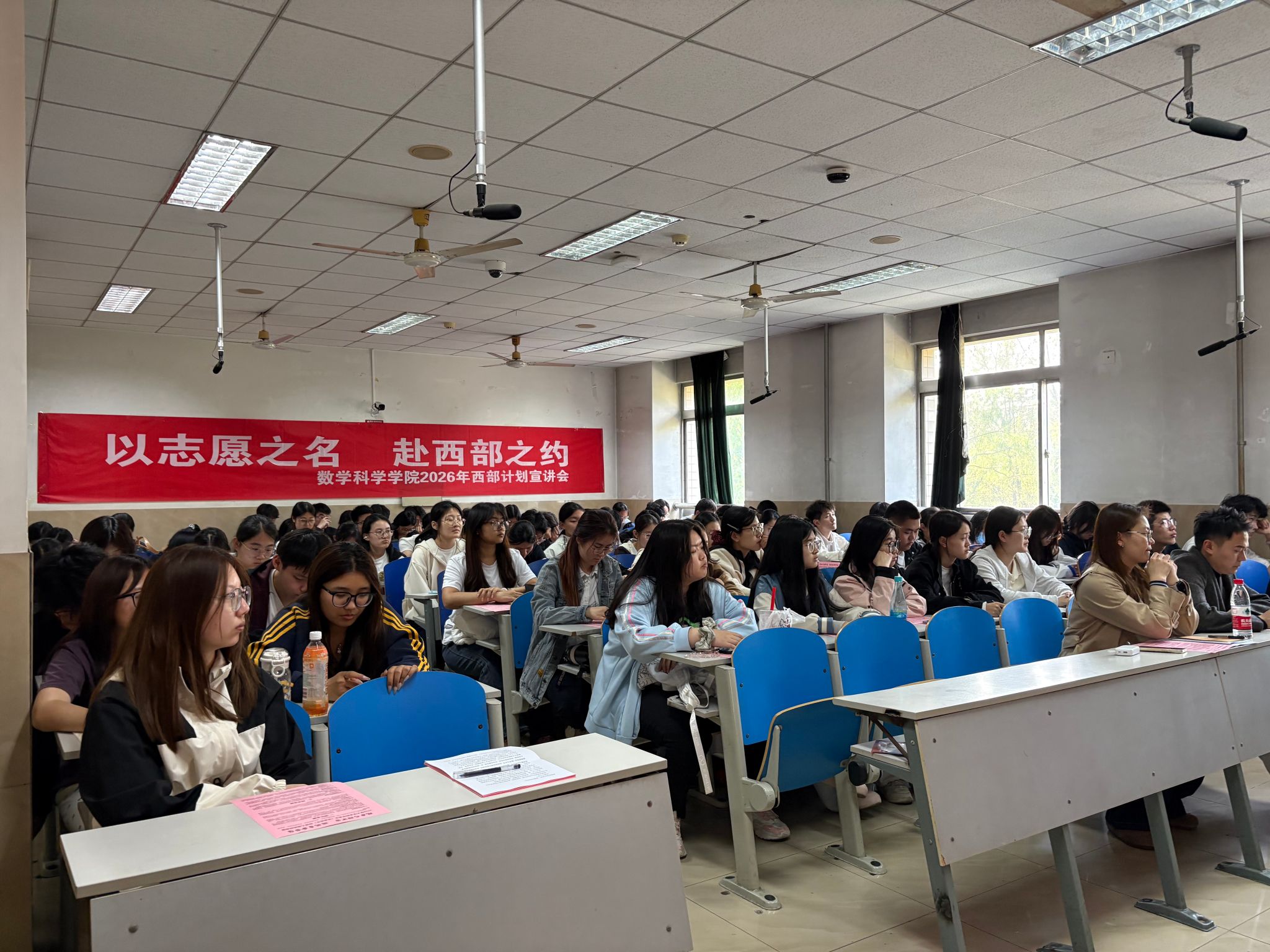 于4月7日在第一教学楼206教室举办2026年西部计划宣讲会,学院团委书记姬磊、2025级辅导员崔瑜及毕业班学生参加活动。