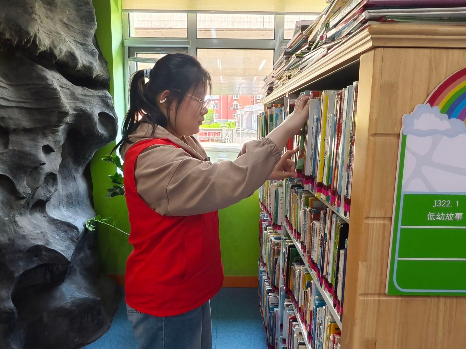 活动开始前,图书馆工作人员对志愿者们进行岗前培训,详细讲解图书的分类规则、排架标准以及面向小读者的服务规范与沟通的注意事项,为后续高效开展服务打下基础。培训结束后,志愿者们迅速进入工作状态,他们分工协作整理归还图书、排查错架书籍、规整书架,同时主动为小读者提供图书检索、借阅引导等帮助,用耐心细致的服务回应每一位孩子的阅读需求。