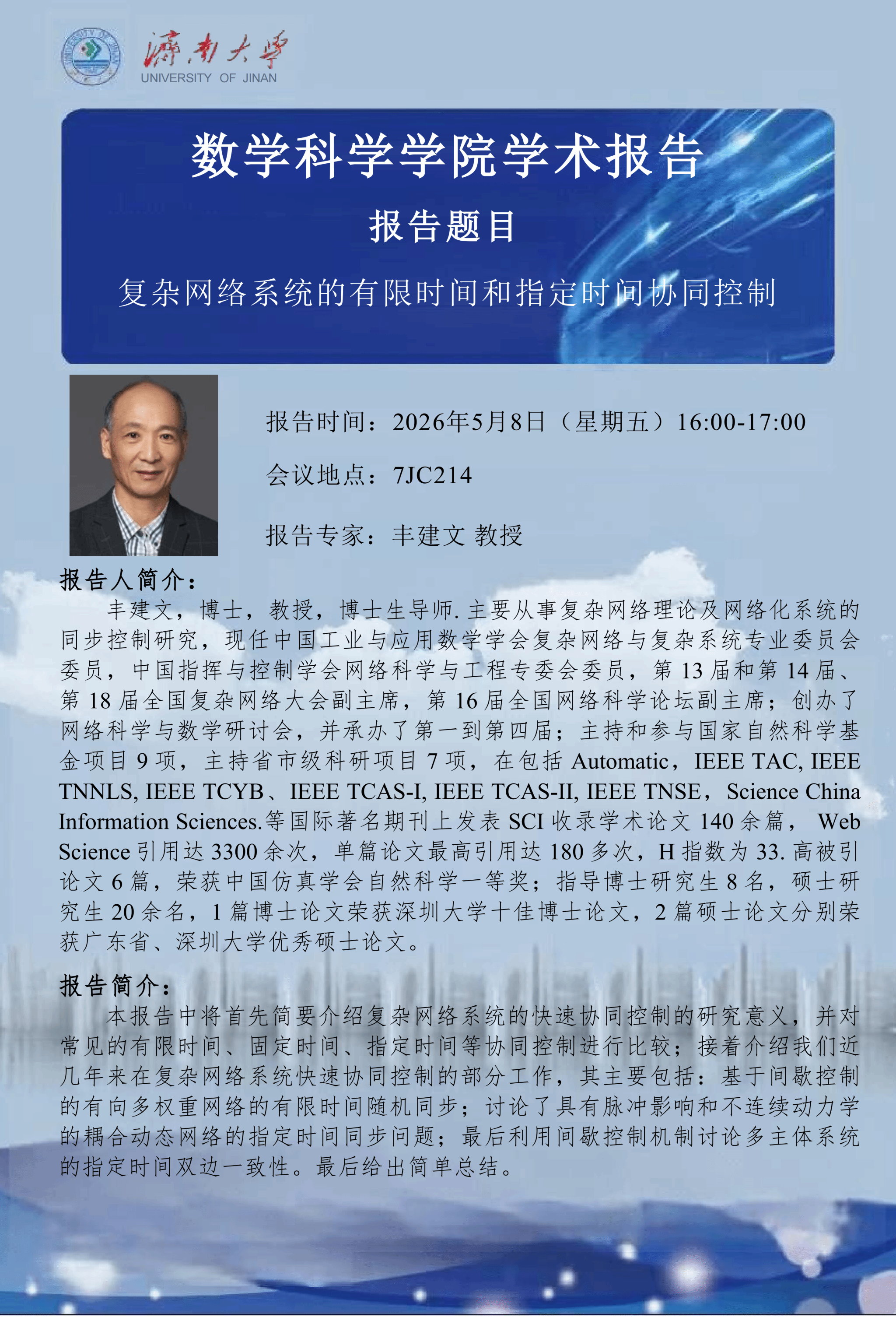 成人论坛 学术报告:复杂网络系统的有限时间和指定时间协同控制